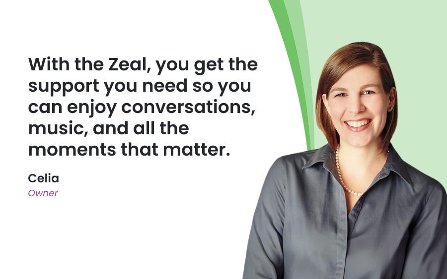 Instead of simply making everything louder, the Zeal helps your mind make sense of the world around you. The Zeal’s AI-powered sound processing helps you stay connected, comfortable, and confident.